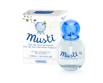 Musti Eau de Soin, Mustela’s iconic fragrance, is composed of 92% plant-based ingredients, including Chamomile and Honey extracts to soothe and soften the skin. This water-based formula is hypoallergenic and safe to use from birth on. (spray-on baby clothes and bedding and older kids will love it too:)