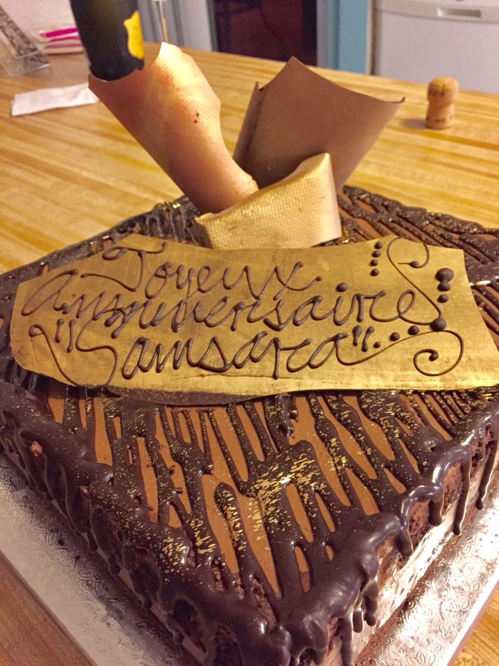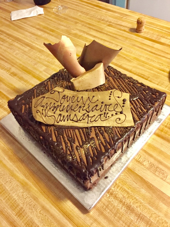 As we walked in rather late in the afternoon I quickly glanced in the display to no avail until I asked the young lady who said she would go check in the back. Lo and behold she came back a few seconds later with a big white box containing that same cake I had drooled over online! The Bomb! My birthday cake patiently waiting for me 🙂 A blessing!