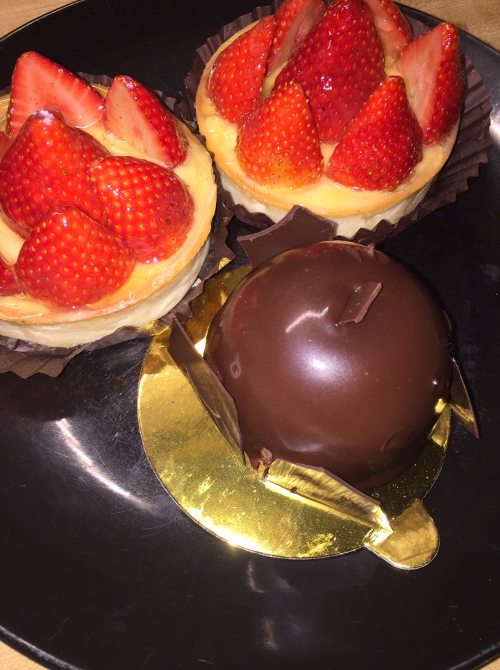 Of course, my daughter wanted to take home some mini strawberry tarts and the gracious young lady added a “Mini Chocolate Bomb” cake to our take-home box as a gift 🙂