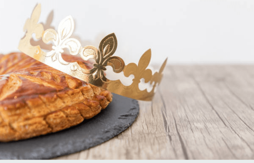 On January 6th, all over France, we celebrate Epiphany Day, 12 days after Christmas, with La Galette des Rois, which is reminiscent of the biblical Christian tradition of the three wise men’s journey or Les Trois Rois Mages bearing gifts of gold, myrrh, and incense following the birth of Jesus. The three wise men, or Kings, were called Balthazar, Gaspard, and Melchior, who followed the star to find Jesus in the manger. The galette follows the tradition of the Tirage des Rois or the drawing of the King. Inside the galette, there is a little trinket or a fève. Custom has it that the youngest child would hide under the table, blindfolded, and designate each piece of galette to be served to the guests. Whoever got the piece of galette with the hidden fève would be crowned King or Queen for the day and wear the Couronne d’Or or golden crown.