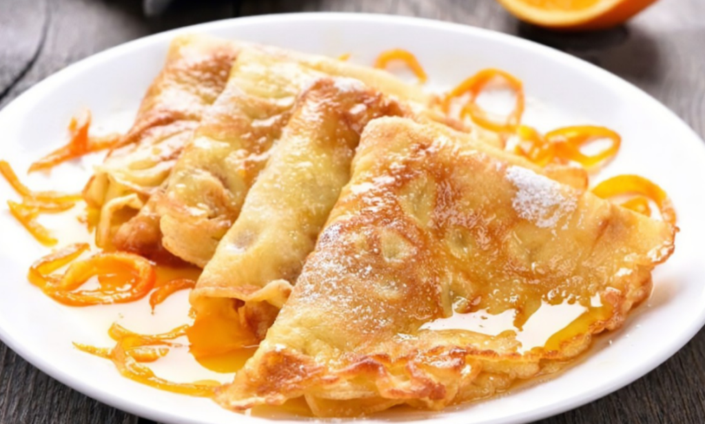 Crêpes are delicious au naturel because they are already quite fragrant with the fleur d’oranger or lemon zest and buttery, so just add a spoonful of sugar, fold or roll, and enjoy your crêpe au sucre. Try a dollop of jam in your favorite flavor fraise, myrtille, framboise, and you’ll have a sweet crêpe à la confiture. Prefer chocolate? Just add Nutella and bananas for crêpe au nutella.The queen of crêpe is called Crêpe Suzette which is a crêpe heated and smothered in butter, sugar, and orange zest flambé in Grand Marnier liquor.