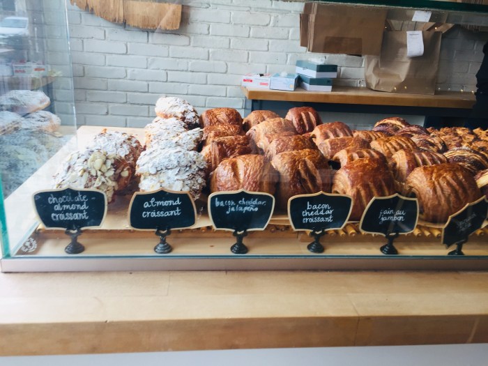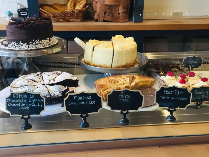 The verdict? Well, the pastries looked wonderful especially the Tarte aux Poires and the Ganache Chocolate cake. I was struck by the super-size croissants compared to their flaky buttery French cousins. The Almond Croissant tasted a little different (more baked) than my first bite but I ate it all. It tasted more like a pastry than a croissant so I’d say that Village Baking has its own specialty there. The Jambon Beurre sandwich, unfortunately, was disappointing. The sandwich bread was quite heavy with lots of dough and lacked the crunchy rustic crust of a baguette. Inside the sandwich, there was Black Forest Ham and Mozzarella or Provolone cheese… so it left much to be desired to come close to the French iconic sandwich.